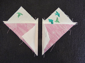 Clip the dog ears (tiny triangles protruding from the rectangles that compose your flying geese.