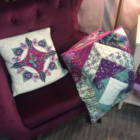 Brett is a huge Tula Pink fan, and I can see some of the same spirit in his work. Stag and Thistle reminds me a bit of the themes presented in Homemade (measuring tape and thread) and Moonshine (the deer) with the berry and aqua tones of Acacia. You could say I'm a pretty big Tula design aficionado too! 😉